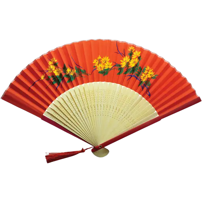 Jade Temple Handfächer 23cm Rot/Blau Rahmen Hell